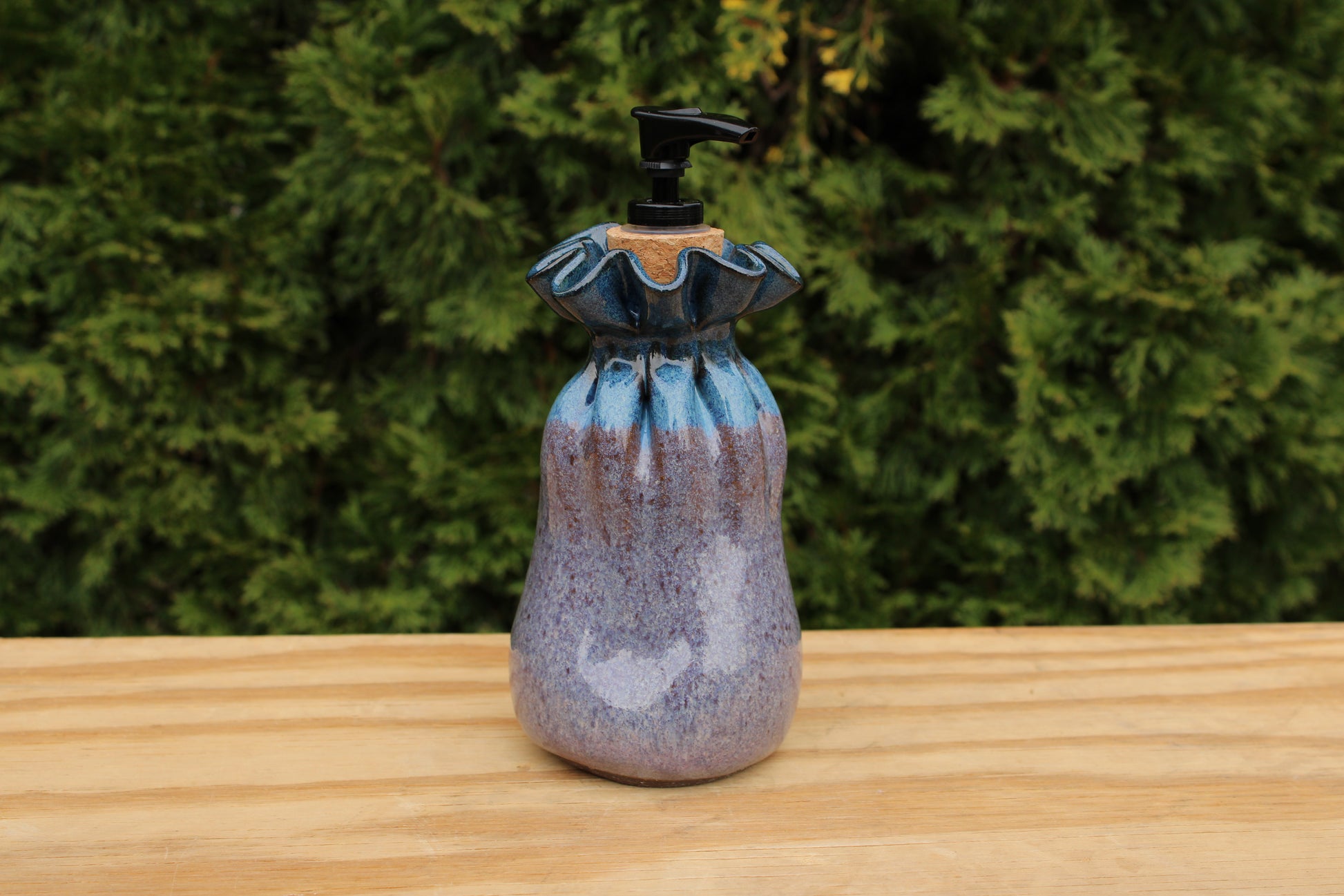 Stoneware "bag" filled with soap or lotion of your choice.