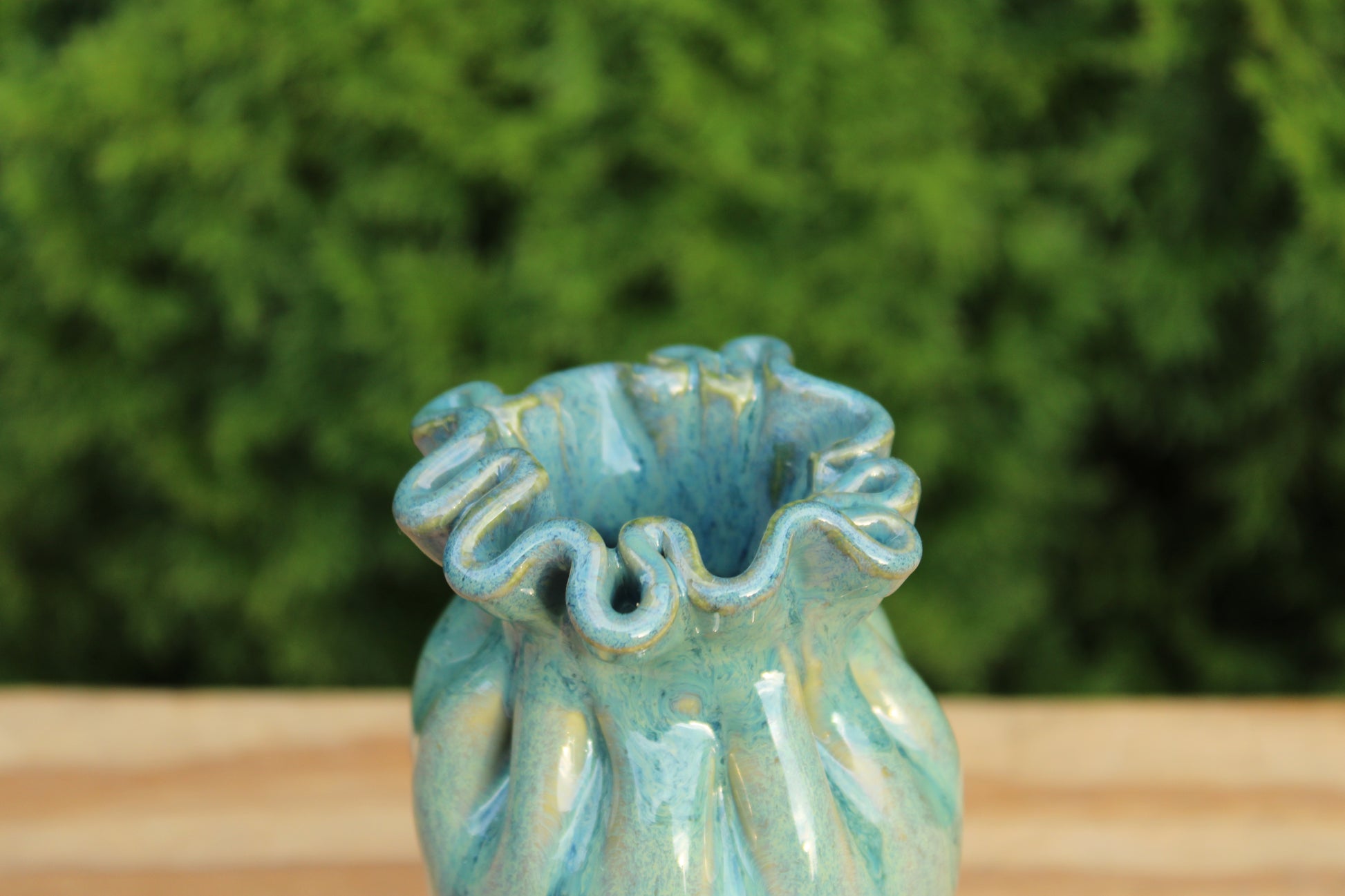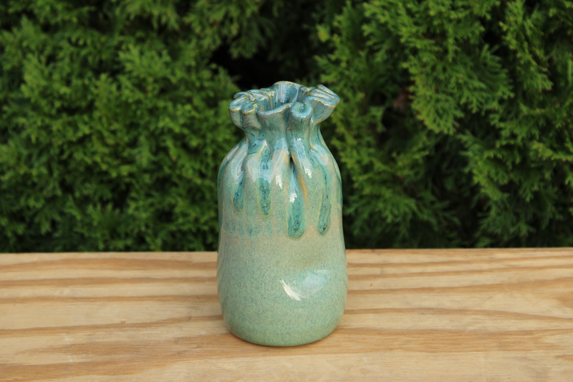 Small vases formed to look like full pouches.