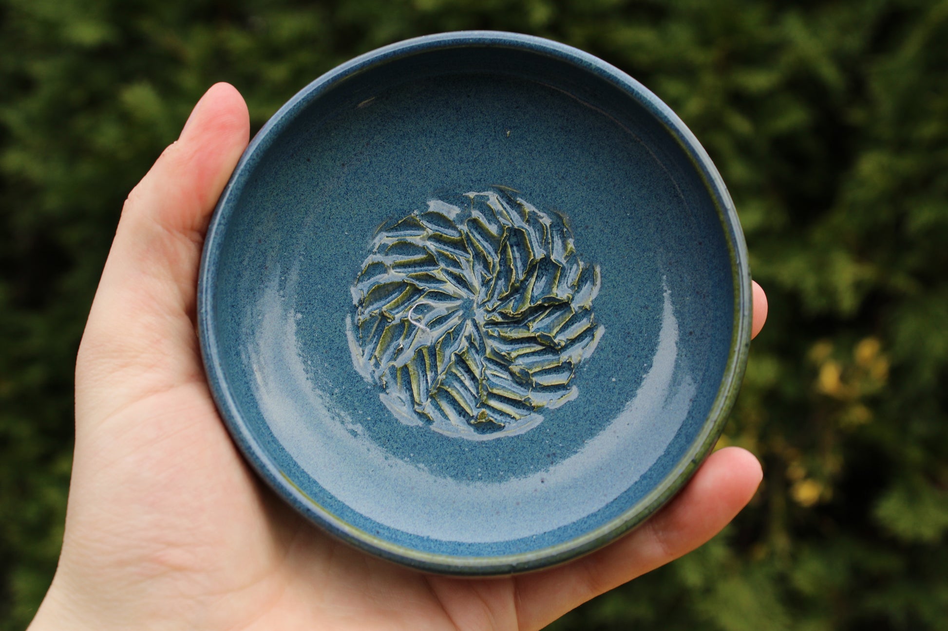 4-5 inch diameter garlic grater, also used for ginger.