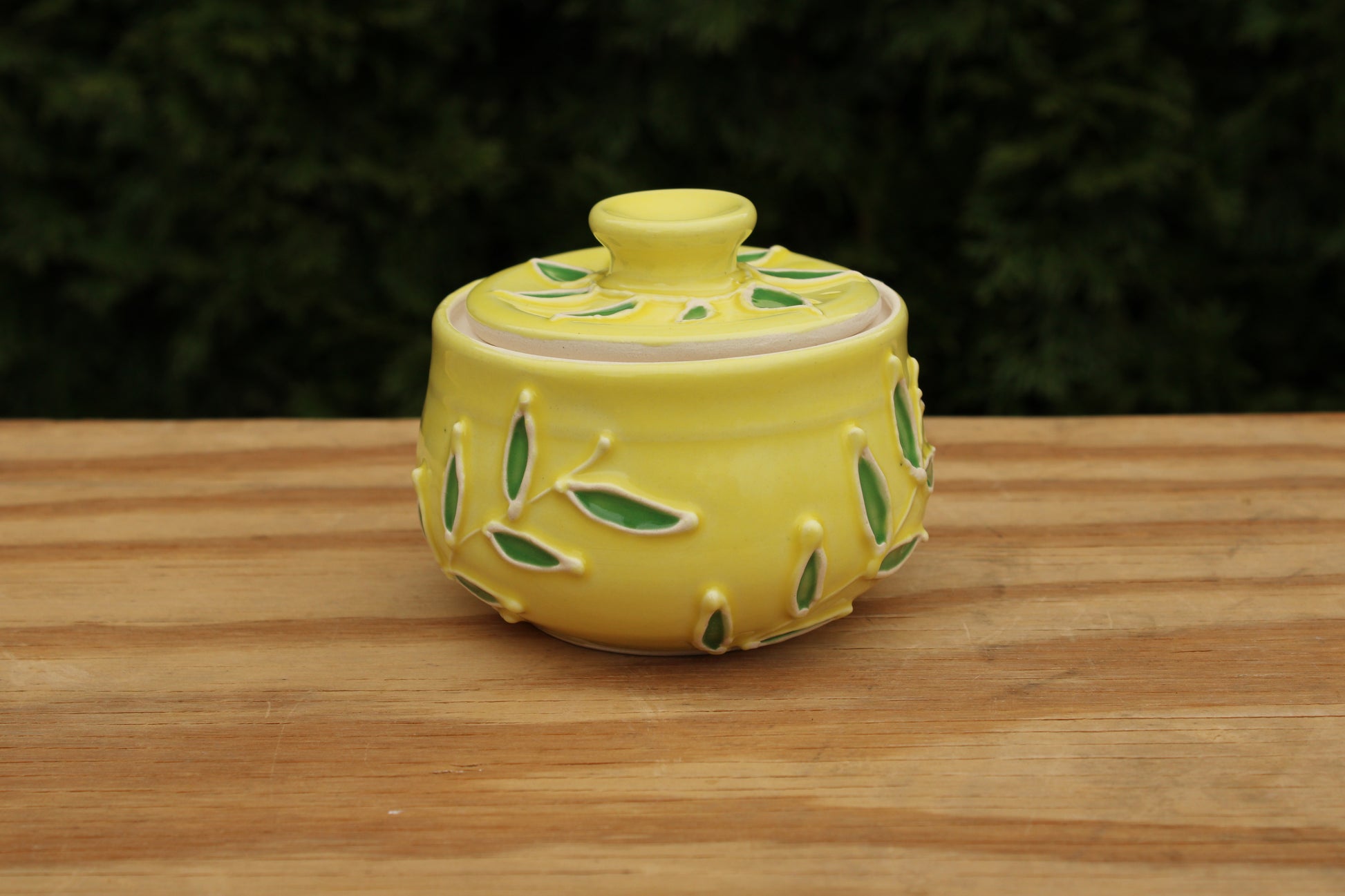 Small porcelain jar with slip-trailed design. Perfect for salt or sugar.